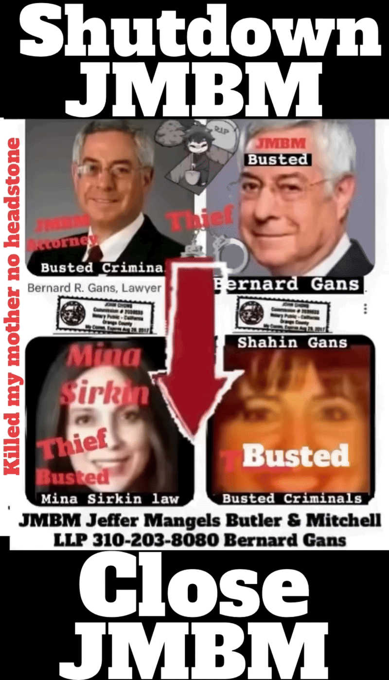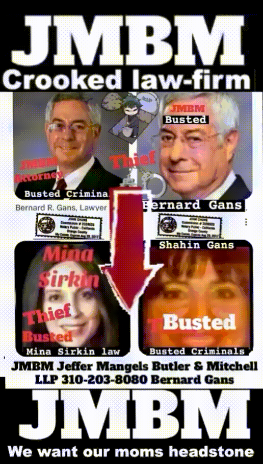 Bernard Reginald Gans # 57068 - jmbm California Business Lawyers Articles | Jeffer Mangels Butler & Mitchel LLP (JMBM) 1900 Avenue of the Stars, 7th Fl Los Angeles, CA 90067 310.203.8080 #58420 Luigi Bernard R. Gans - Articles | Jeffer Mangels Butler & Mitchel LLP California Business Lawyers Jeffer Mangels Butler & Mitchell LLP partner Bernard gans engaging in criminal acts forging illegal documents. GMBM attorney Bernard Gans patent lawyer is a criminal Jeffer Mangels Butler and Mitchell LLP jmbm lawyer Articles | bernard r. gans